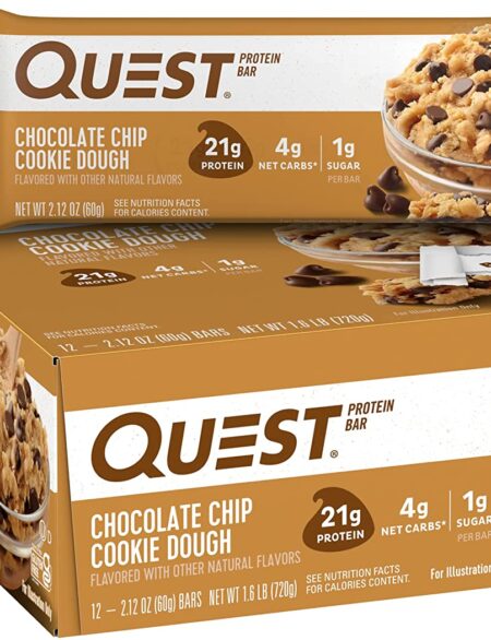 $35.00$26.00- YOU DESERVE A SPECIAL TREAT: The Quest Chocolate Chip Cookie Dough Protein Bar tastes like a scoop of cookie dough fresh from the bowl. Only our version is packed with chocolate flavored chips and has 21g protein 4g net carbs and 1g sugar